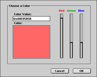 Vous passez des valeurs de couleurs RVB dans les paramètres couleurAvantPlan, couleurArrièrePlan et couleurArrièrePlanAlt. Ces valeurs sont des entiers longs de 4 octets dont le format (0x00RRGGBB) est décrit ci-dessous (les octets sont numérotés de 0 à 3 de la droite vers la gauche) :