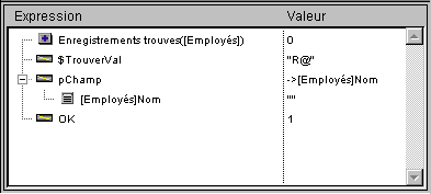 Vous pouvez évaluer toute expression qui peut être affichée sous forme de texte. Cela ne s'applique donc pas aux champs ni aux variables image ou BLOB. En revanche, lorsque vous déployez les listes hiérarchiques, le débogueur vous permet d'afficher les tableaux et les pointeurs. Pour afficher le contenu des BLOBs, vous pouvez utiliser les commandes sur les BLOBs, comme par exemple BLOB vers texte.