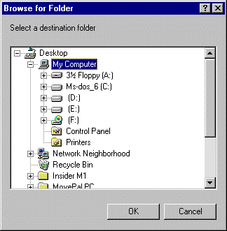 The Select folder command displays a standard dialog box to browse through the workstation's volumes and folders.