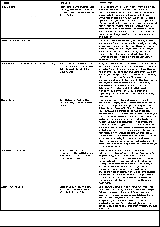 Die Zeilenhöhe muss für jeden Datensatz angepasst werden an die Spalten "Actors" oder "Summary". Das Ergebnis sieht folgendermaßen aus: