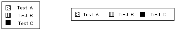 MarkeUmgekehrt gibt an, ob Bezeichnung und Marke der Legende umgekehrt sind. Die Marke zeigt das einer Reihe zugewiesene Muster und die Farbe. Standardmäßig erscheint die Marke links vor der Bezeichnung.